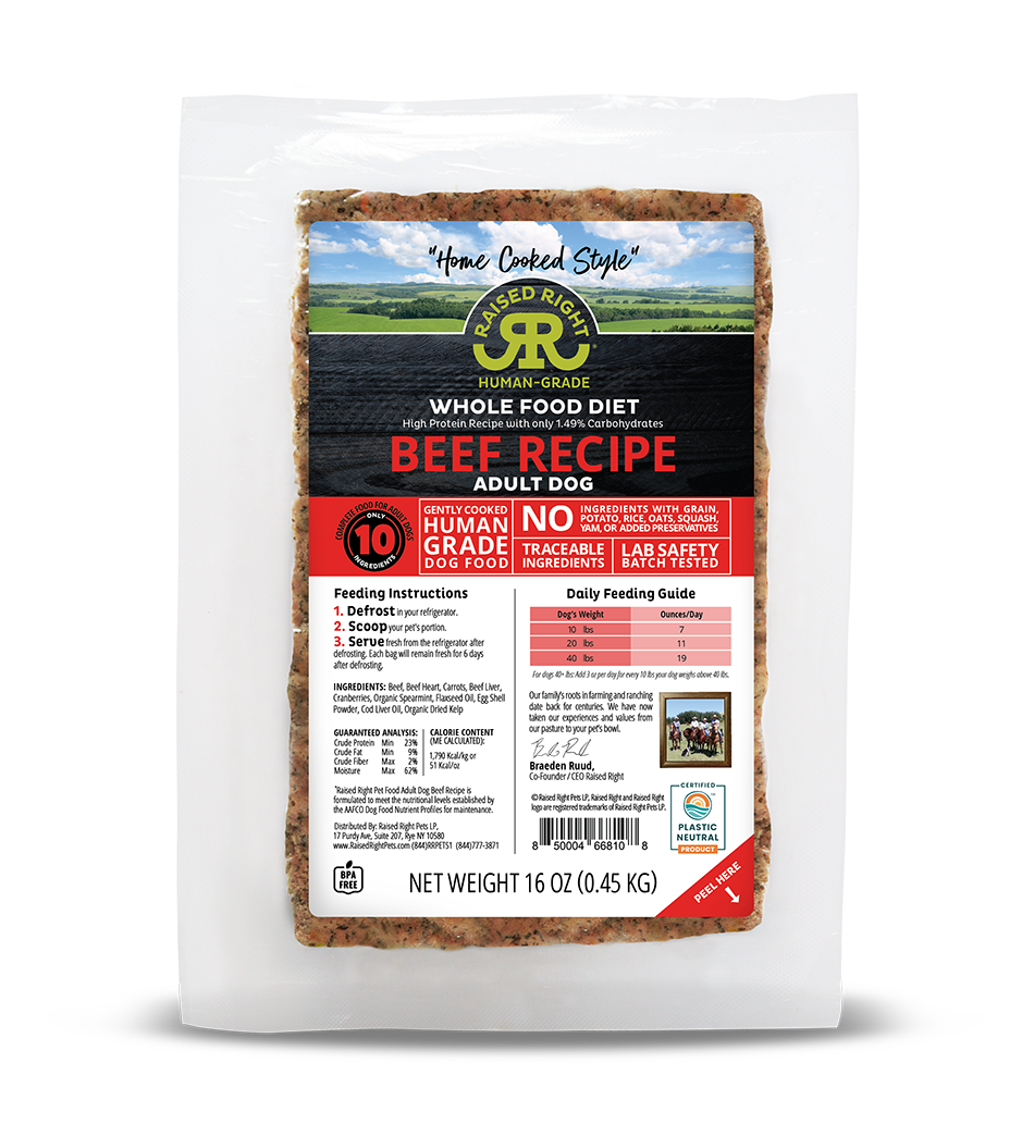 Every ingredient meets standards required for human consumption. Raised Right food is gently cooked in a human-grade facility using low temperature cooking that meets the USDA pathogen kill-step.